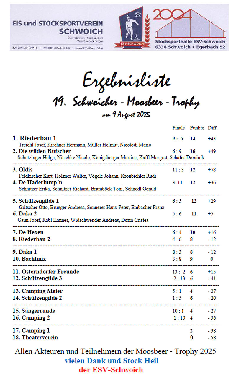 Kirchner Hermann, Müller Helmut, Nicolodi Mario 2. Rang: Die Wilden Rutscher, Schützinger Helga, Nitschke Nicole, Königsberger Martina, Kaffl Margret, Schäfer Dominik 3. Rang: Oldis Feldkircher Kurt, Holzner Walter, Vögele Johann, Kronbichler Rudi |